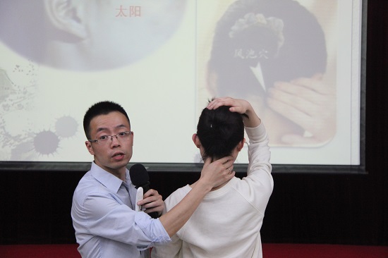 袁磊医生详细讲解了中医眼中的疾病诱因及体质特点解析,艾灸的功效特点、适用范围及禁忌,艾灸的基本操作手法以及如何辨别艾灸材料的优劣,现场演示了感冒、咳嗽、胃不适、肩颈腰腿痛以及女性妇科疾病等常见问题的艾灸处理办法。在最后的自由问诊环节,大家提出了一些感兴趣的健康问题,他逐一进行了解答,并给大家提供了切实有效的养生建议。生动的讲解、诙谐的语言、实用的方法以及现场热烈的问答互动,得到了大家的欢迎和认可。