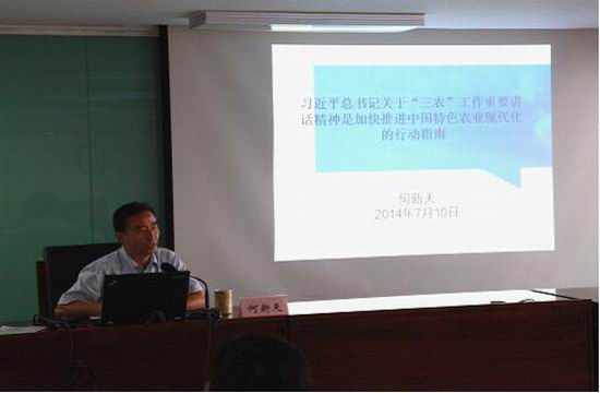 为加强学习贯彻落实习近平总书记系列讲话精神,7月10日下午,全国畜牧总站党委书记何新天同志以“习近平总书记关于‘三农’工作重要讲话精神是加快推进中国特色农业现代化的行动指南”为题目为全体干部职工讲了一堂生动的党课。