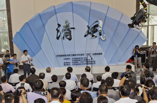 8月22日,中央国家机关廉政文化建设“清风”主题书画扇面展在全国农业展览馆与观众见面。近千件风采各异的扇面书画,传递着中央国家机关干部职工“一肩曰月、两袖清风”的情怀。中纪委常委、中央国家机关工委副书记、纪工委书记俞贵麟,中央国家机关工委副书记、中央国家机关工会联合会主席邵旭军,中央国家机关各部门直属机关纪委书记、工会主席及职工代表200多人出席开幕式。农业部党组成员、人事劳动司司长曾一春等参观了展览。