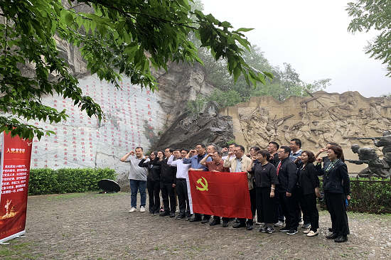 大家首先登上百望山,瞻仰黑山扈战斗纪念园,聆听抗日军民在这里打退敌人进攻、并用步枪等轻武器击落敌人战斗机的英勇抗战故事,深切缅怀革命先烈,并集体重温了入党誓词。