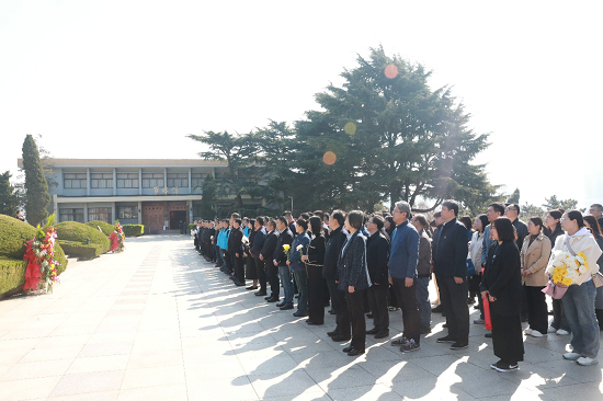 党员干部集体参加了青岛市革命烈士纪念馆组织的纪念仪式,国歌唱毕,在“山河魂”烈士群雕前,党员干部整齐列队、垂首默哀,向革命先烈鞠躬致敬。在铭刻着17157位烈士英名碑前,党员干部依次献花,表达对革命先烈的敬仰、对革命历史的纪念。党员干部集体参观了青岛市革命烈士纪念馆,走进抗战馆与军魂馆,泛黄的家书、斑驳的武器、定格的影像,生动再现了青岛革命斗争的光辉历程。党员干部驻足学习,从“暗语书写的会议记录”中,感叹先辈们的智慧与谋略;从“甘将热血沃中华”的壮烈誓言中,感悟共产党人矢志不渝的信仰伟力。