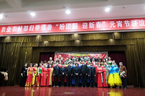 2月18日,农业农村部举办归侨侨眷“盼团圆、迎新春”元宵节联谊活动,传达学习中央和国家机关第一次归侨侨眷代表大会会议精神。部侨联“侨友之声”艺术团表演精彩文艺节目,部系统侨届人士齐聚一堂,共庆中华民族传统佳节。全国政协委员、中国侨联副主席、中央和国家机关侨联主席邵旭军同志受邀出席活动并讲话。中国农科院党组书记张合成同志、部机关党委常务副书记潘学峰同志,农科院、中监所等侨务工作重点单位党组织负责人,北京市侨联和海淀区有关负责同志参加活动。