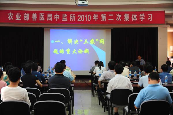 为贯彻落实全国农业厅局长座谈会精神,深入学习领会“三农”政策和理论,进一步推进下半年兽医工作和兽医系统创先争优活动深入开展,7月28日下午,农业部兽医局和中国兽医药品监察所联合开展了2010年第二次集体学习活动,这也是兽医局党支部“带头学习提高”第三次专题讲座。活动由兽医局党支部副书记、副局长张弘主持,李金祥局长及全局党员干部和中国兽医药品监察所处级以上干部参加了集体学习。