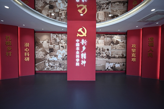 中国农科院新乡精神展馆坐落于河南省新乡市,于2021年底正式建成,包括序厅、发展历程、榜样故事、薪火相传4个部分,通过400余件图片、实物和近2万文字,全方位、全过程、全景式展示了新中国成立以来,我国著名红色农学家、中国农科院首任分党组书记陈凤桐院士组织科研人员在新乡开启的奋斗历程。以植物保护专家齐兆生、土壤专家王守纯、农田水利专家贾大林、植物保护专家郭予元为代表的一代代农业科学家在粮棉增产、黄淮海平原综合治理等方面作出突出贡献,累计获省部级以上奖励150余项,为我国农业农村发展提供强有力的科技支撑,形成了“扎根乡村、潜心科研、攻坚克难、造福人民”的“新乡精神”,是科学家精神在农业科技领域弘扬和传承的典型代表,是讲述科学家故事、学习科学家精神的“实践课堂”,将在推进党史学习教育常态化长效化、推动中国农科院始终成为弘扬科学家精神的高地和主阵地等方面发挥重要作用。